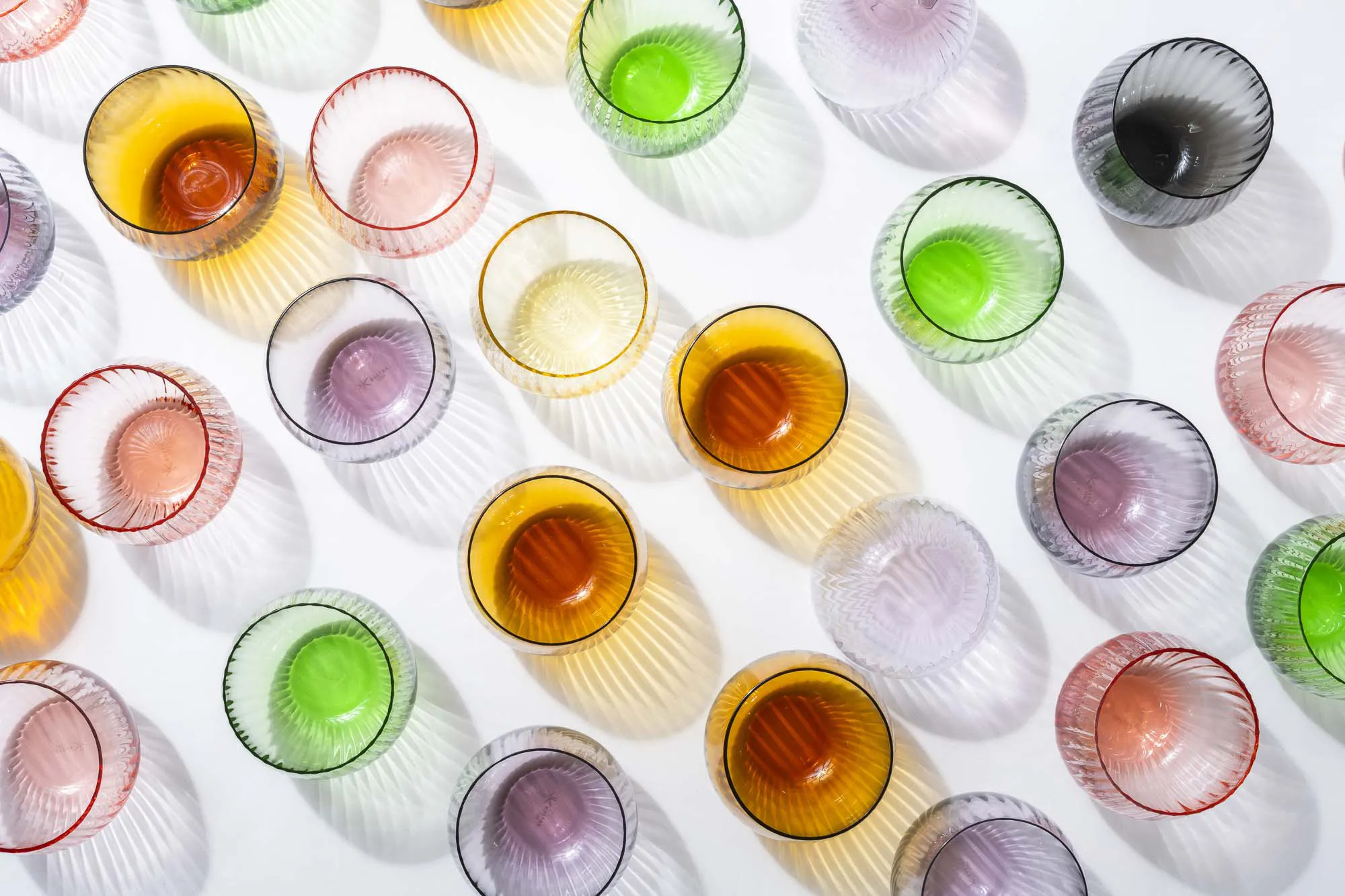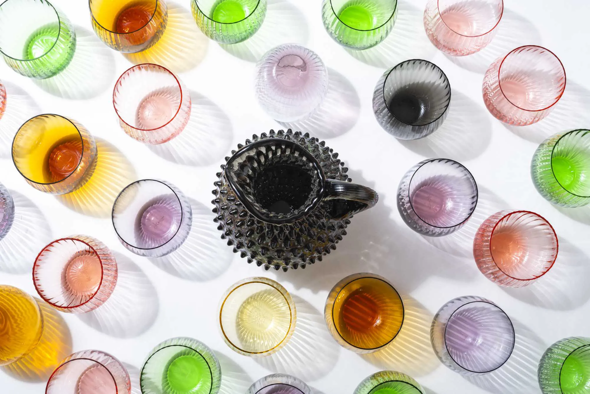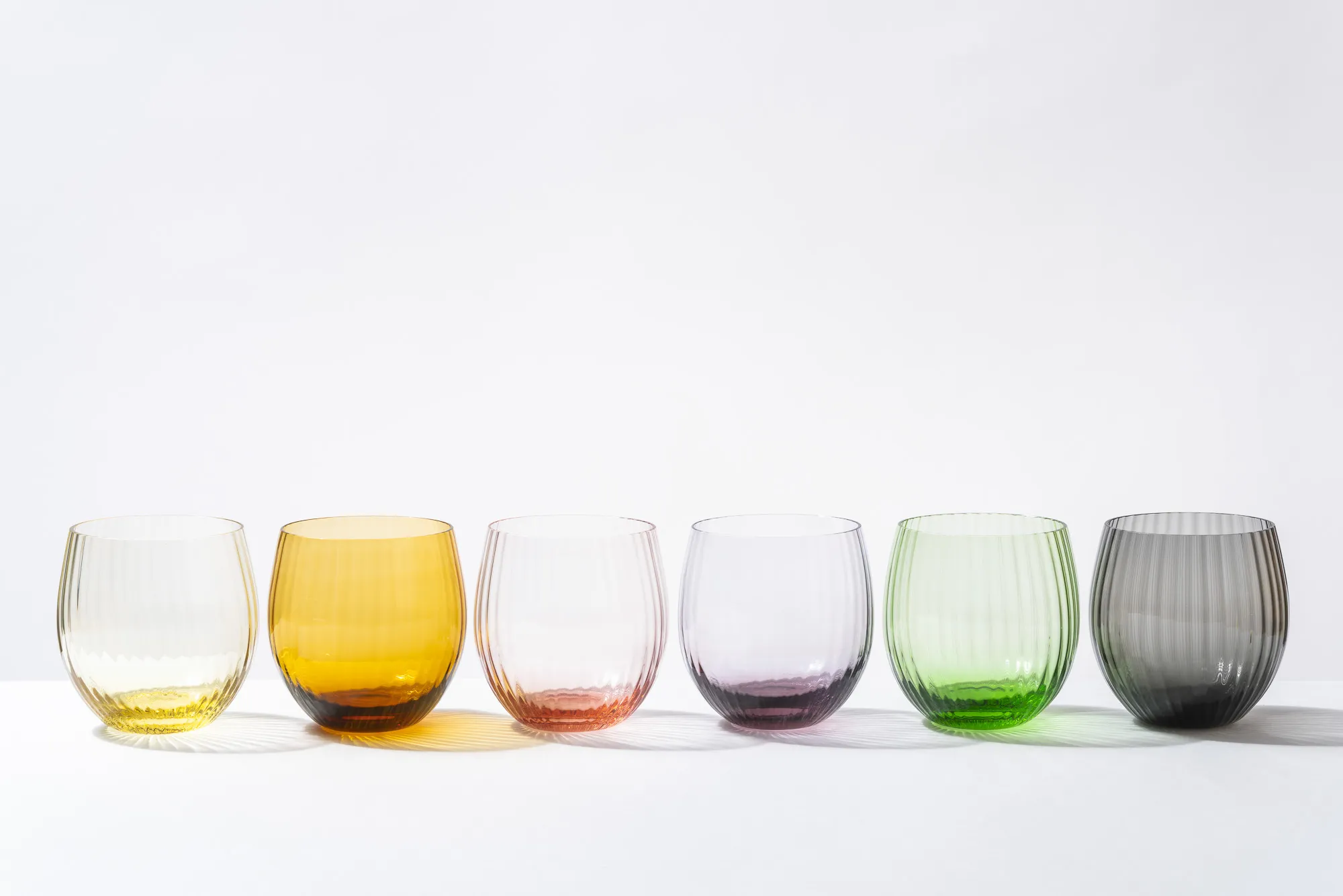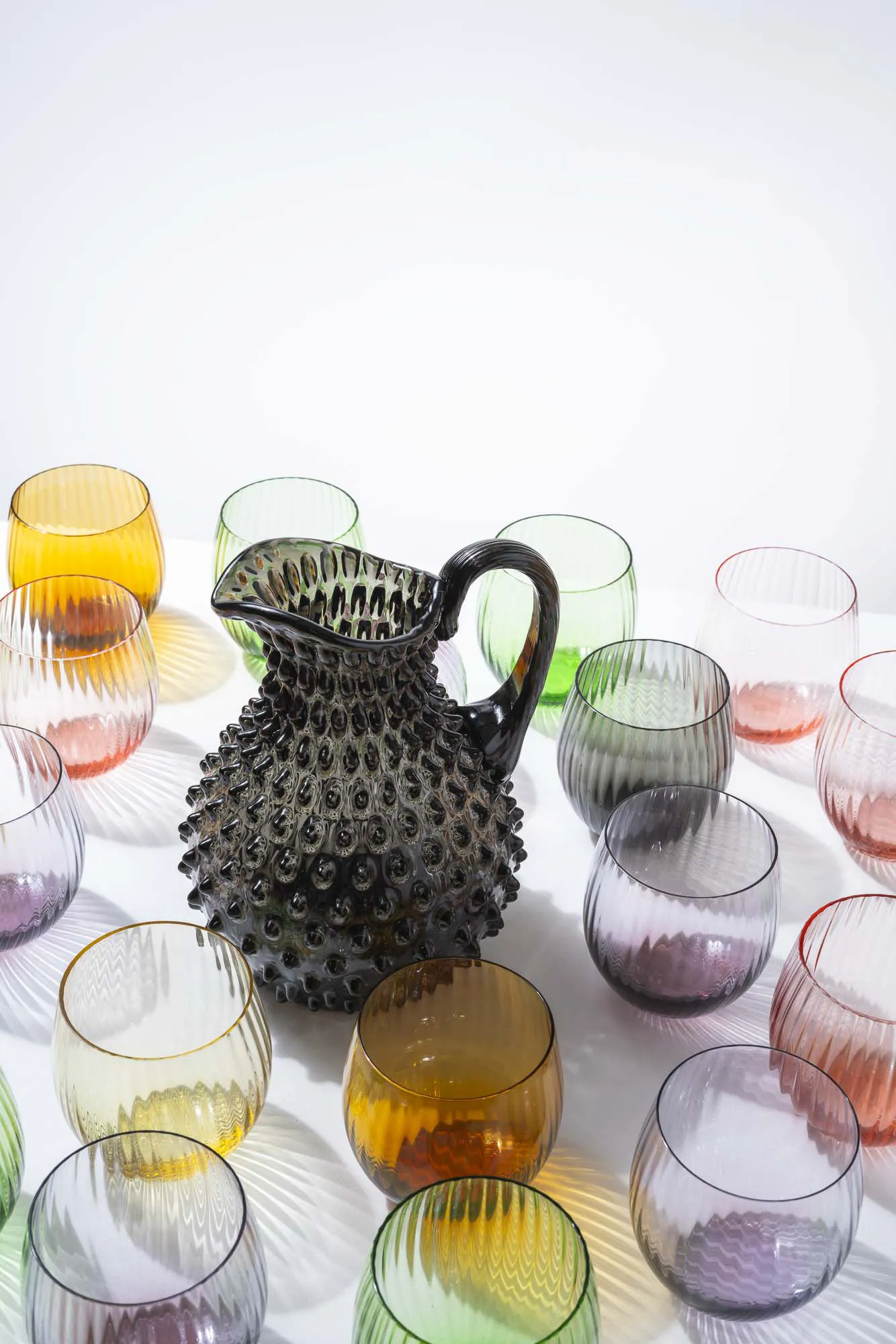 Ručne vyrobené sklo s vertikálnou optikou pre nevšedný zážitok z jedla. V kombinácii s ostatnými farbami z kolekcie Tethys colors je ideálny pre väčšie skupiny na jednoduché rozpoznanie vlastného skla. Tvorí tiež krásnu kombináciu s ručne fúkaným džbánom Polka dot v rovnakej farbe.