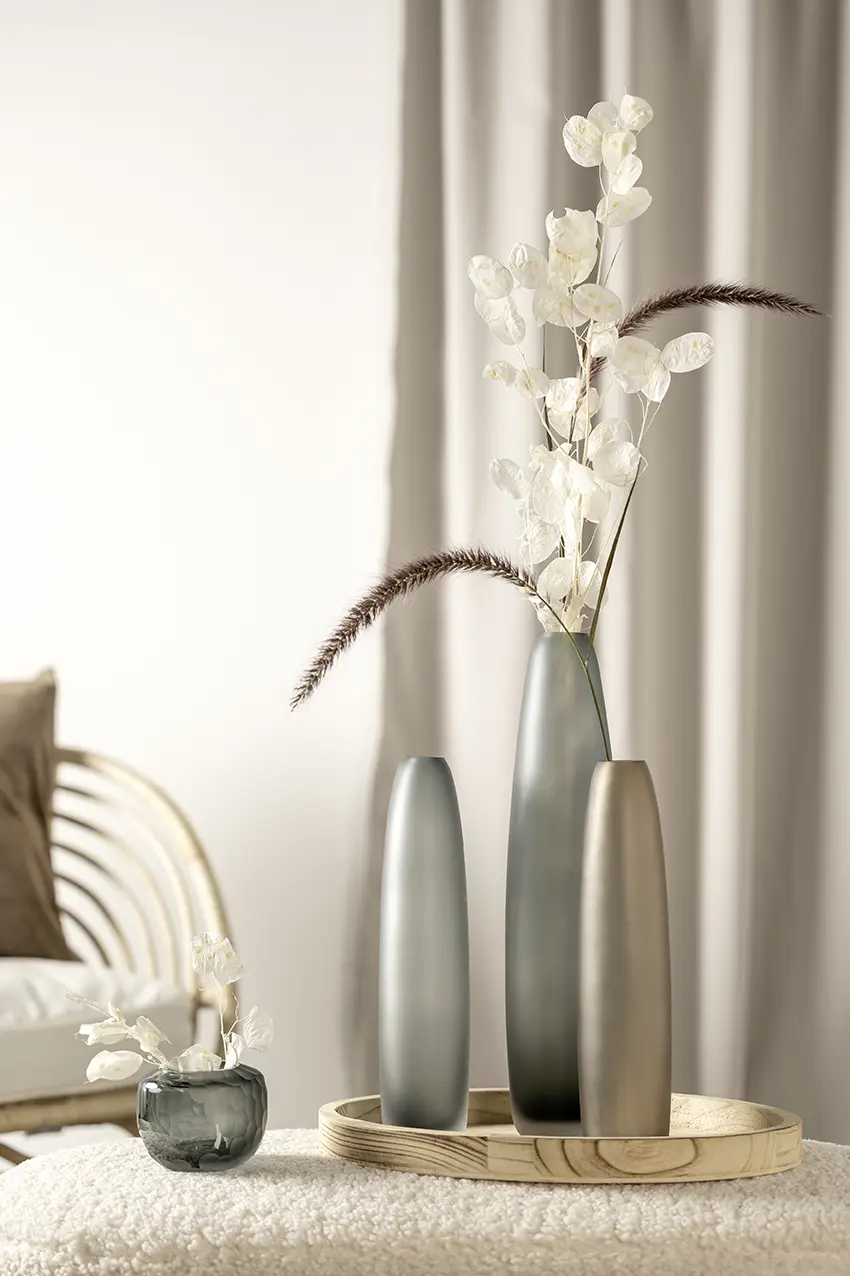 Vytvorte si oázu pohody zo svojho domova s vázou zo série BELLAGIO.Nechajte sa touto príjemne tvarovanou vázou preniesť do moderného sveta. Sklo antracitovej farby zaisťuje krásny a kvalitný vzhľad. Harmonický, moderný a štýlový Leonardo vás inšpiruje pri aranžovaní domova.