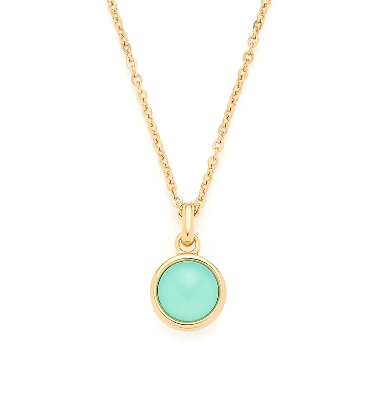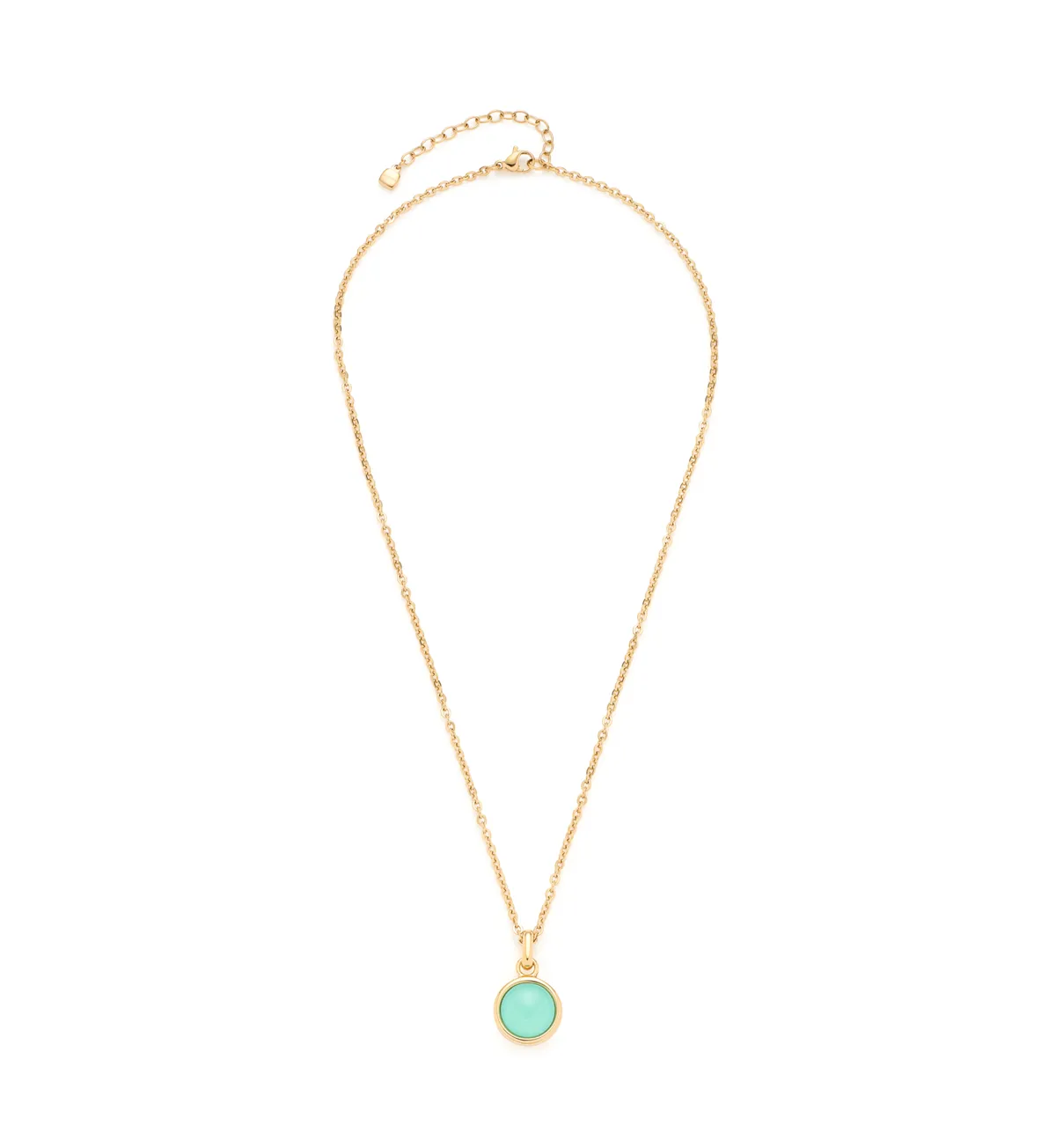 Okrúhly lagúnovo modrý prívesok je skutočným pútačom a robí z toho náhrdelníka „must have“ kúsok. Jemná, trblietavá zrkadlová kotviaca reťaz je ukončená karabínkou a dá sa nastaviť pomocou predlžovacej retiazky.