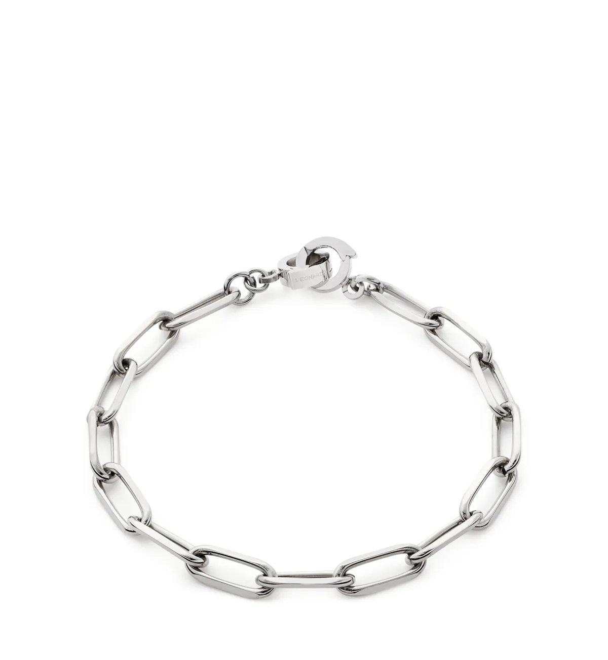 Jednoduchý náramok z obdĺžnikových retiazkových očiek vhodný ako doplnok napríklad ku koženej bunde.