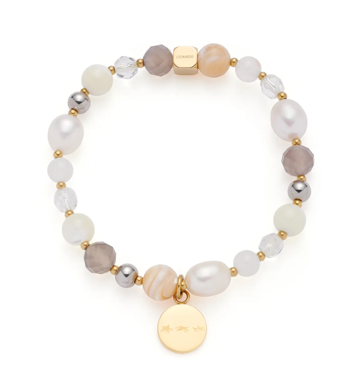 LeonardoElastický náramok Leonardo z ušľachtilej ocele so sladkovodnými perlami, achátom a perleťou.