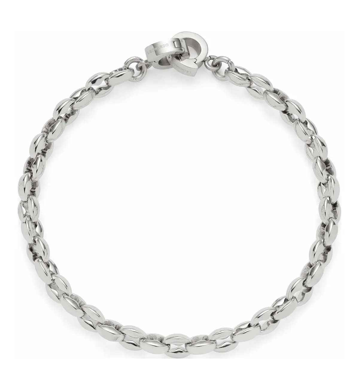 Náramok tvorený z retiazkových článkov oválneho tvaru pripomínajúci lodné kotvové reťaze. Tento náramok má šarm a záujme módne srdcia.