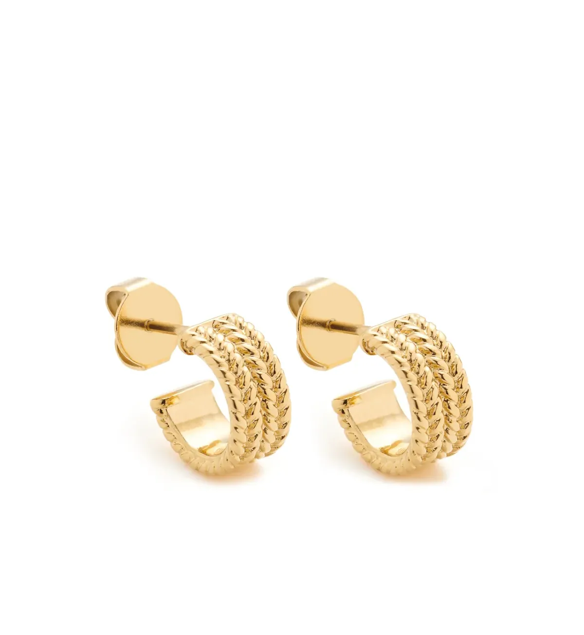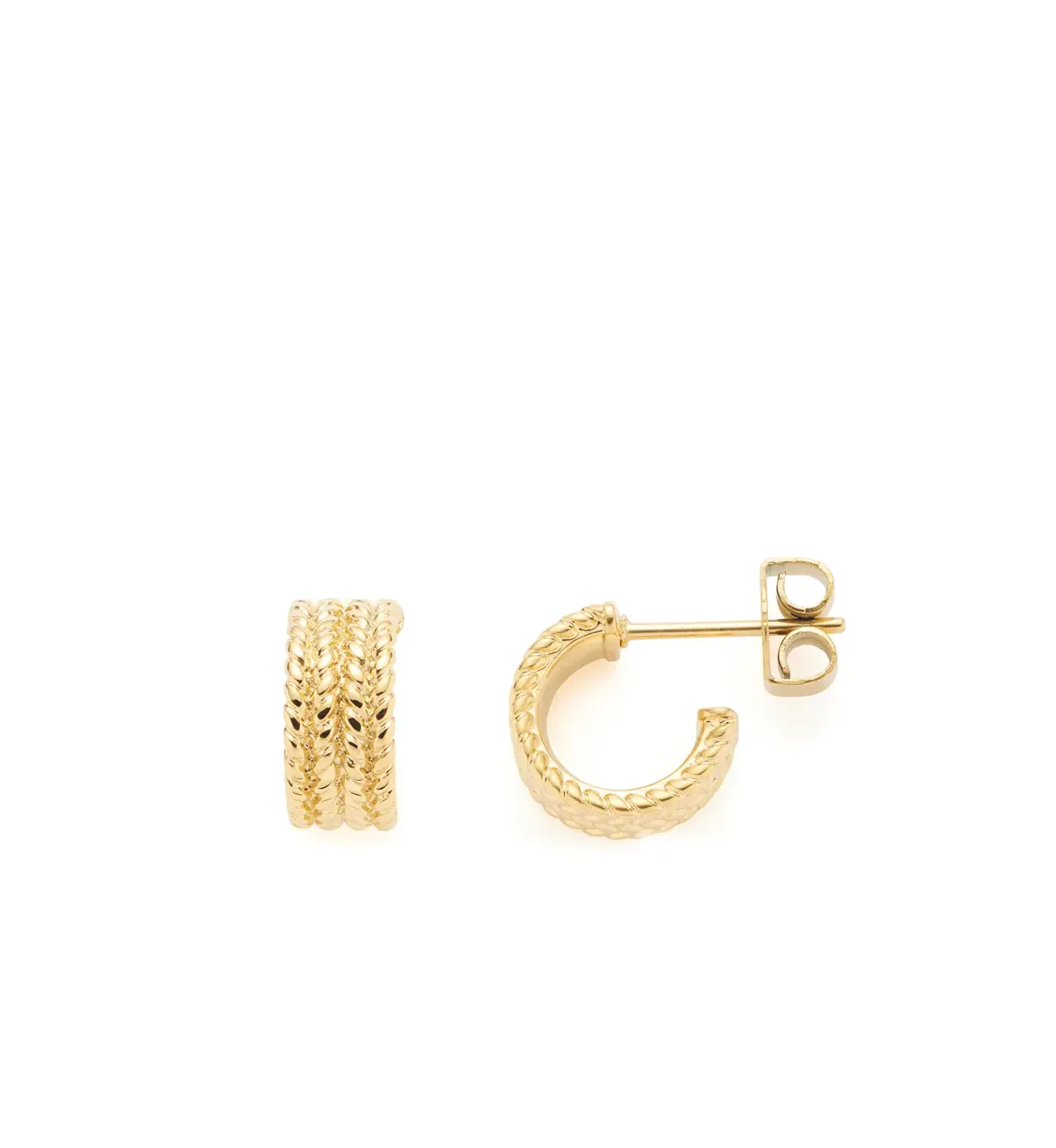 Nadčasové kruhové náušnice so štruktúrou vrkoča. Pôsobia elegantne sú dokonalým doplnkom k náhrdelníku Theresia.