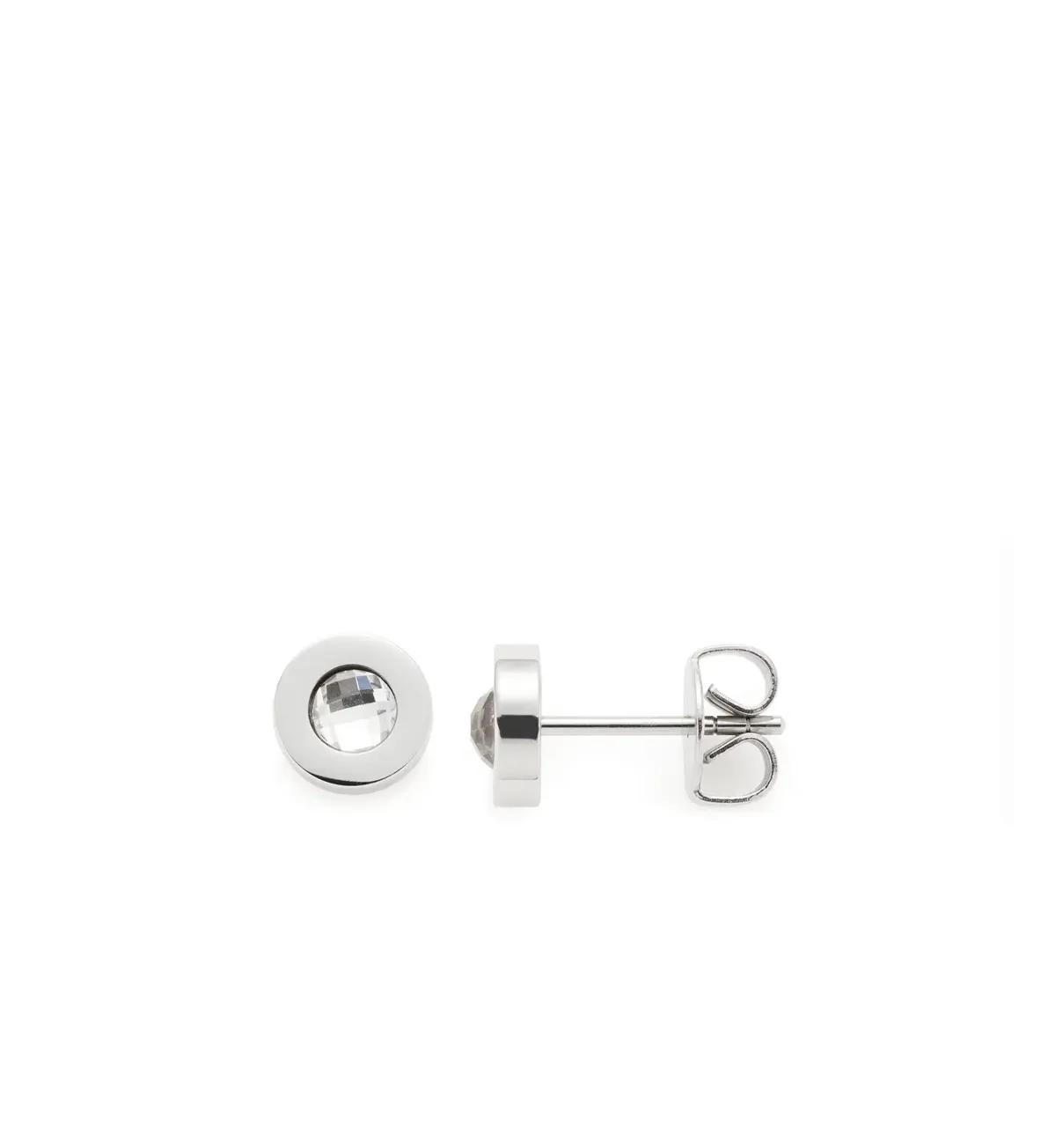 Malé guľaté napichovacie náušnice s čírym krištáľovým kameňom.